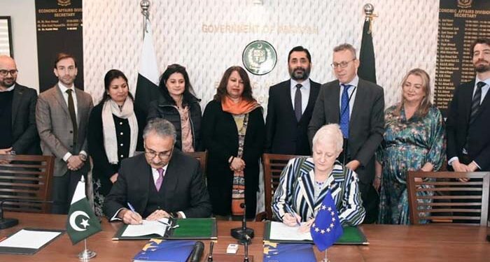 Today, the European Union (EU) Ambassador to Pakistan, Ms. Riina Kionka, and Dr. Kazim Niaz, Secretary of the Ministry of Economic Affairs, signed five new EU grant agreements. These agreements, under Team Europe’s response to the 2022 post-flood Resilient Recovery, Rehabilitation, and Reconstruction Framework, signify a substantial commitment of nearly EUR 100 million (equivalent to over PKR 30 billion).