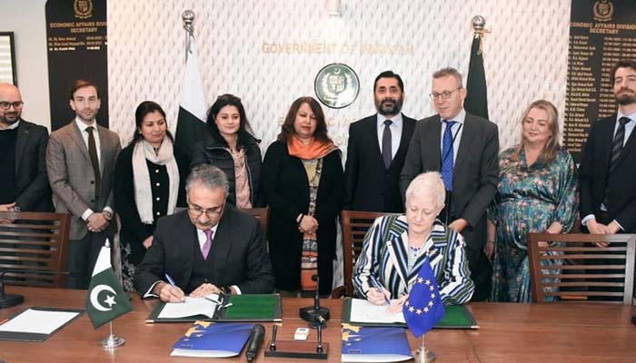 Today, the European Union (EU) Ambassador to Pakistan, Ms. Riina Kionka, and Dr. Kazim Niaz, Secretary of the Ministry of Economic Affairs, signed five new EU grant agreements. These agreements, under Team Europe’s response to the 2022 post-flood Resilient Recovery, Rehabilitation, and Reconstruction Framework, signify a substantial commitment of nearly EUR 100 million (equivalent to over PKR 30 billion).