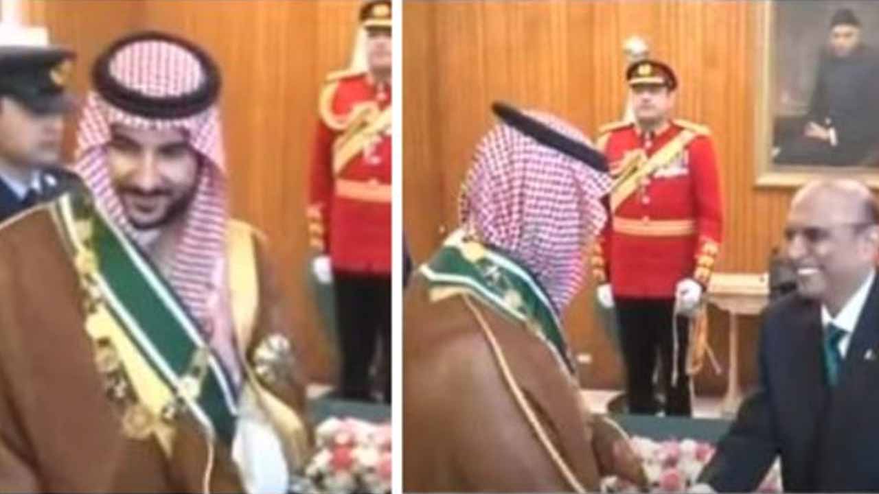 President Asif Ali Zardari bestowed the Nishan-i-Pakistan award upon Minister for Defence of the Kingdom of Saudi Arabia, Prince Khalid bin Salman bin Abdul Aziz Al Saud, during a Special Investiture ceremony held at Aiwan-e-Sadr on Saturday.